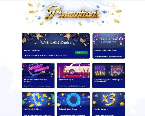 In der Spielesammlung des BluVegas Casinos gibt es eine große Auswahl an Spielen in allen Genres und Kategorien. Dies umfasst Tischspiele, Live-Casino, Jackpot-Slots, Bonuskäufe und andere Casino-Spielkategorien. Mithilfe des Suchfelds oder der verfügbaren Filteroptionen können Sie schnell das gesuchte Spiel im Casino entdecken. Einige der größten Softwareentwickler auf dem Markt haben die Spiele entwickelt, die Sie im Casino spielen können. Diese Spielesammlung enthält viele bekannte Spiele von Microgaming, NetEnt, Betsoft, Ezugi und Evolution. Darüber hinaus verfügt jedes Spiel im Casino über eine kostenlose Demo-Option, mit der Spieler das Spiel testen können, bevor sie eine Wette darauf platzieren. Damit können Sie sich mit den Features eines Spiels vertraut machen, ohne Gefahr zu laufen, Geld zu verlieren. Insgesamt bietet die BluVegas Casino-Bibliothek genug Abwechslung, um sowohl neue als auch erfahrene Spieler zu unterhalten.