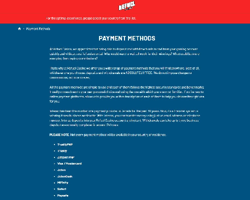 Kundeservice er tilgjengelig via e-post eller live chat. Da vi ringte dem, ble en kundebehandler med i chatten på under ett minutt, noe som er prisverdig. Hvis du velger hurtiginnskuddsalternativet i den feilaktige troen at det å sette inn penger bare vil ta et minutt, vil du bli sviktet – eller enda bedre, irritert – av kravet om at du oppgir telefonnummeret ditt. En bekreftelseskode vil da bli sendt til deg på SMS. Den vanlige registreringsprosessen starter etter at du har tastet inn bekreftelseskoden i det obligatoriske feltet. Og på dette tidspunktet innser du at Refuel er et kasino som tar imot spillere fra et stort antall nasjoner der spørsmålet om legalisering av online gambling er omstridt. Bortsett fra det utgjør forhåndsvisninger av spillet mesteparten av hovedsidens innhold. Du kan få tilgang til informasjonen om avgifter, vilkår og betingelser og lisensiering ved å bla helt til bunnen.
